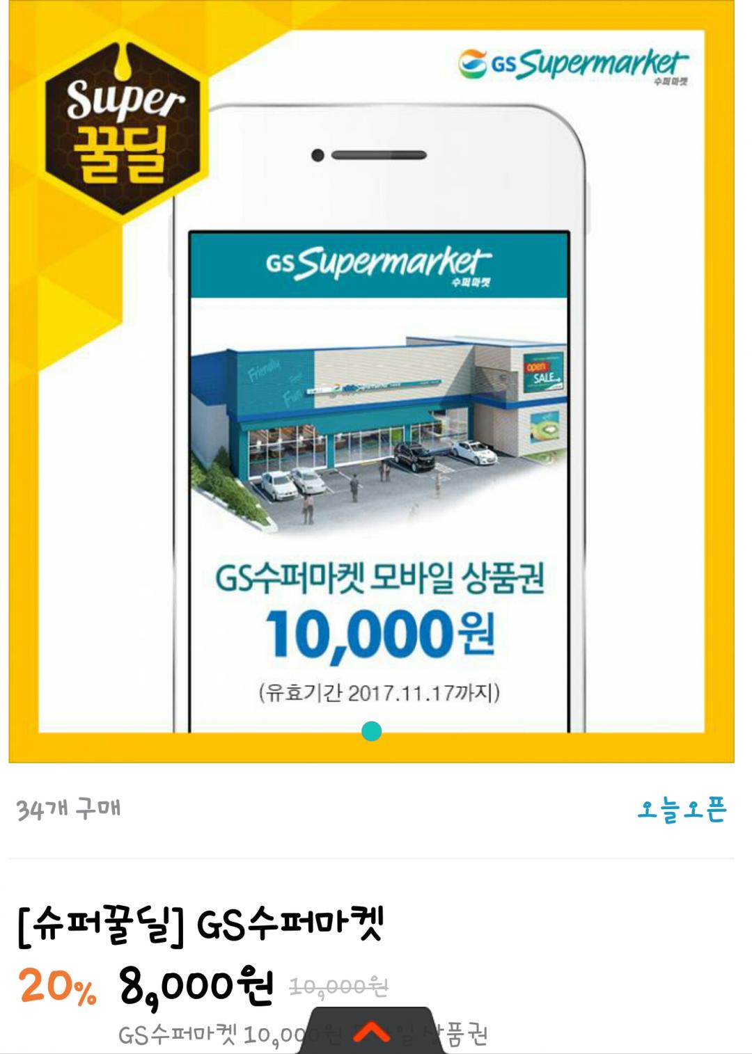 [티몬] GS수퍼마켓 모바일 상품권 10,000원 (8,000) > 국내핫딜