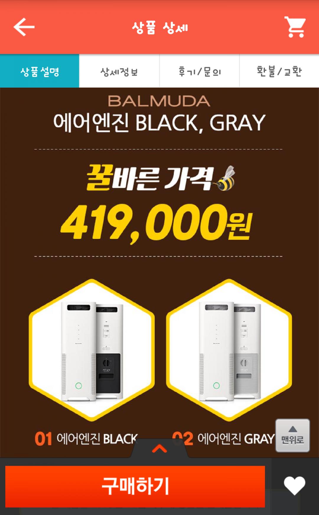 [티몬] 슈퍼꿀딜) 발뮤다에어엔진, 올곧은 물티슈 (419,000&15,400/무료) > 국내핫딜