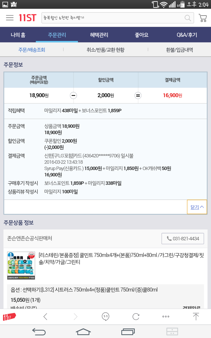 22일 마일리지 데이 리스테린 갠찬네여 총 750 5개에80 하나더주고