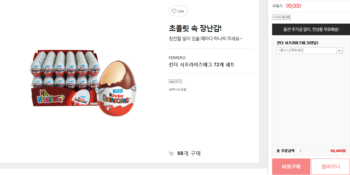 [G9] 킨더 서프라이즈 에그 72개 세트 (99,000/무료) > 국내핫딜