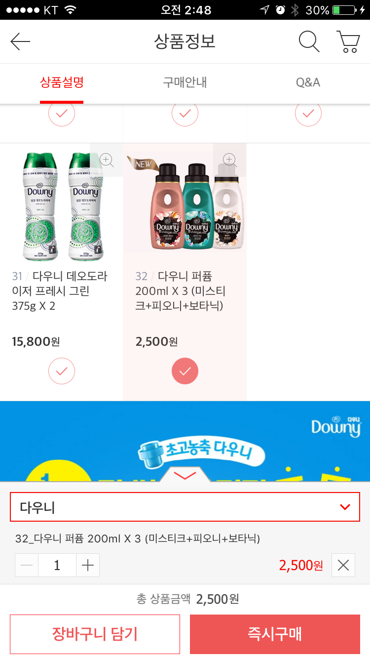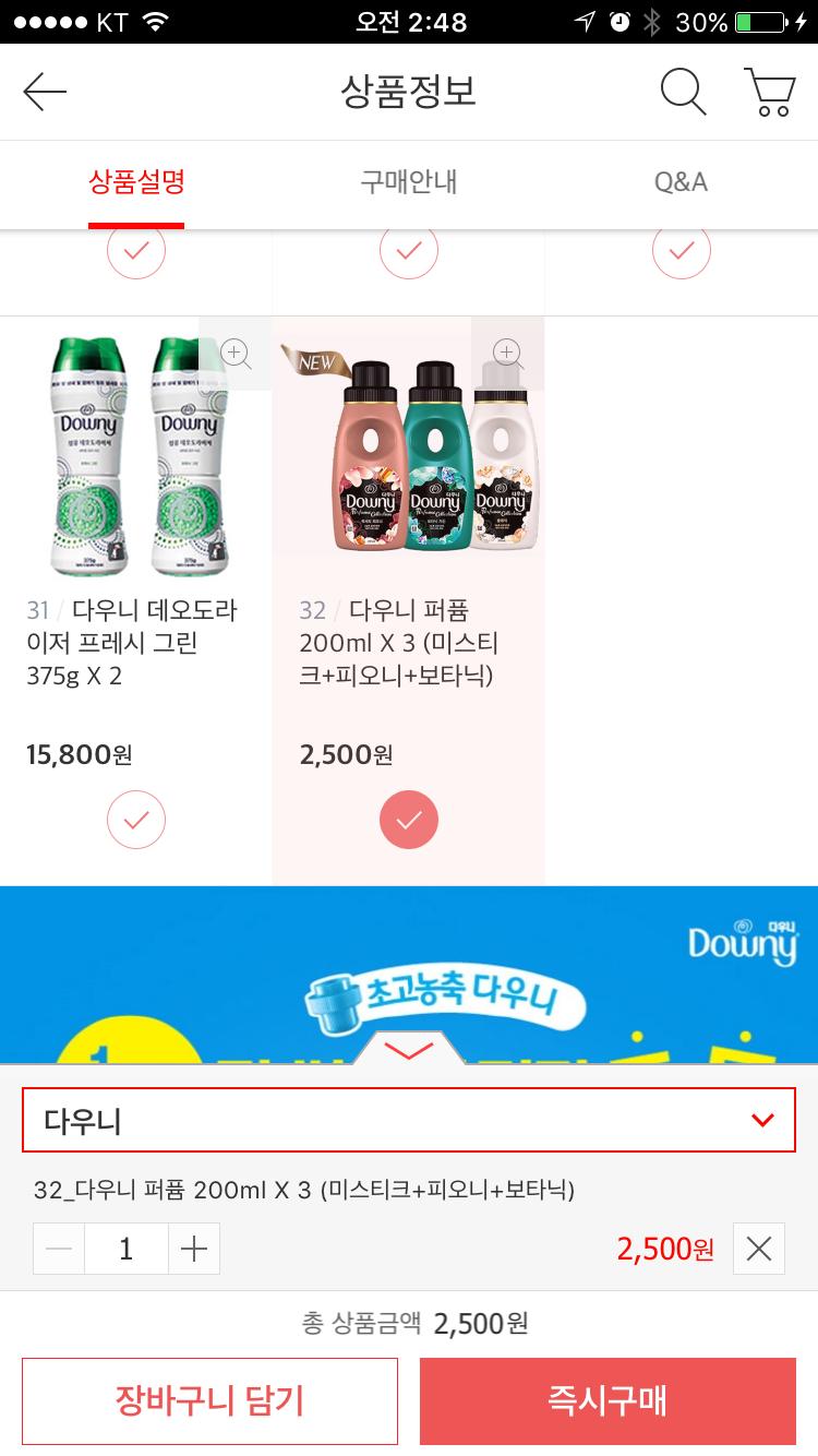 [위메프] 다우니 섬유유연제 X 3 (2,500/배송비)