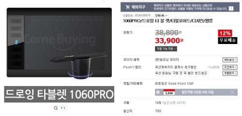 [옥션] 1060PRO 드로잉 타블렛 (33,900/ 무료)