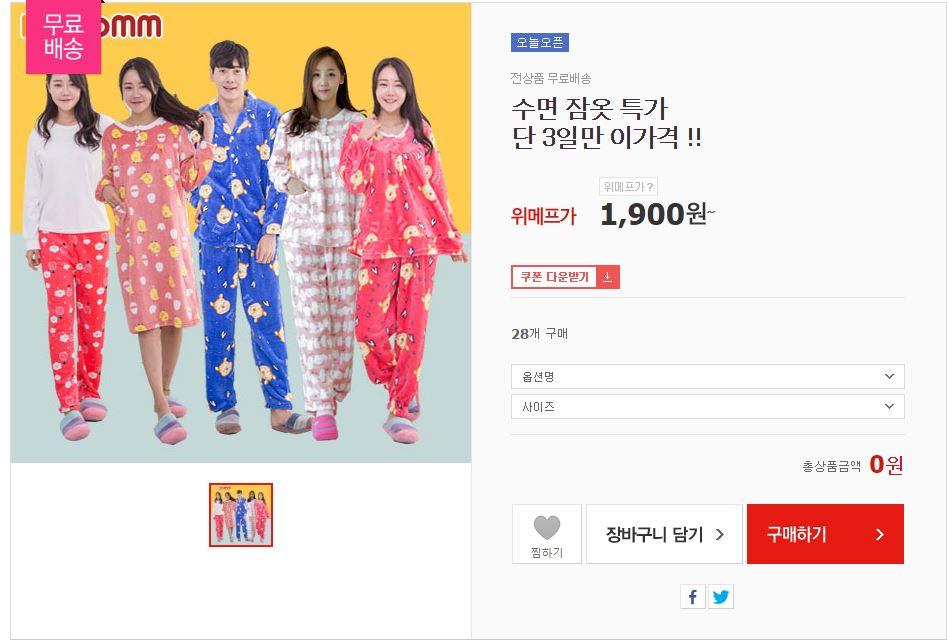 [위메프] 수면 파자마 (1,900/무료) > 국내핫딜