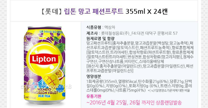 [G마켓] 립톤 망고패션프루트 24캔 (5,900/무료) > 국내핫딜