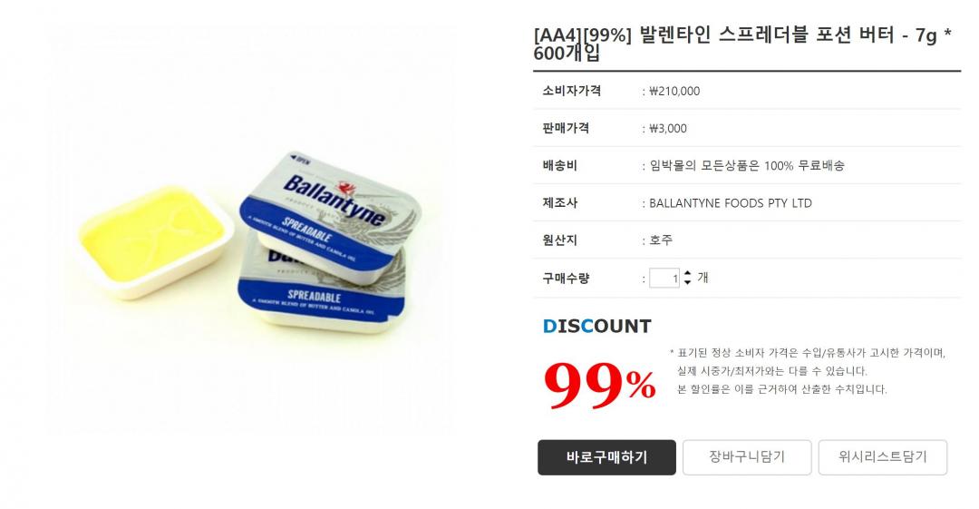 말그래도 유통기한이 내일이고 먹을 수 있는 기간이 조금 더 된다고 하지만, 그래도 600개라는 수량을;;; 어차피 몇개 먹고 버리게 될거 같은데 거기에 3처넌을 쓸빠엔 마트에서 파는 버터 사 드시는게 육체건강에 이로울 듯 싶습니다. |