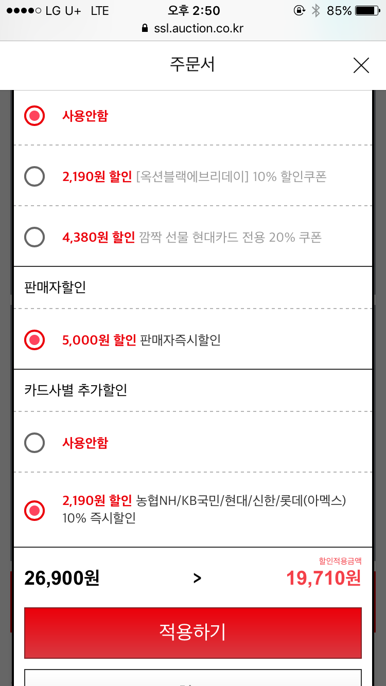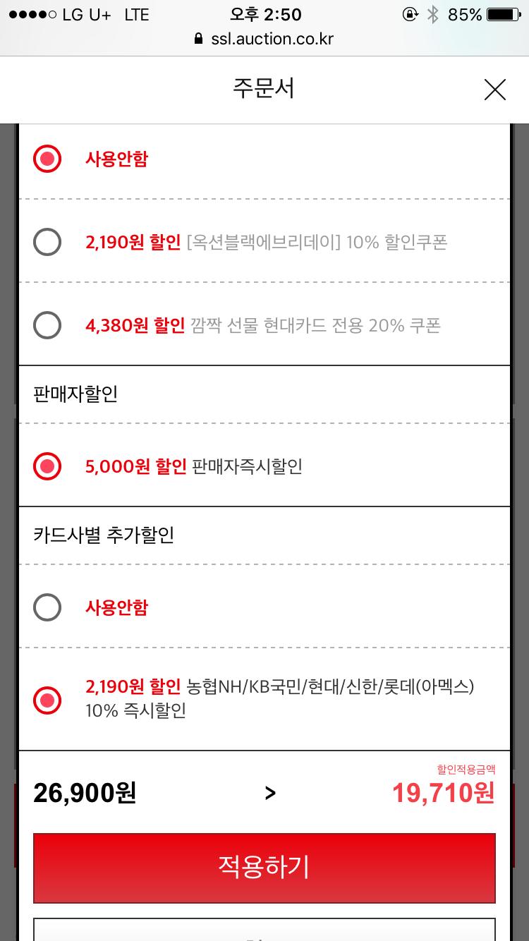10% 청구할인되서 19,710원이네요.