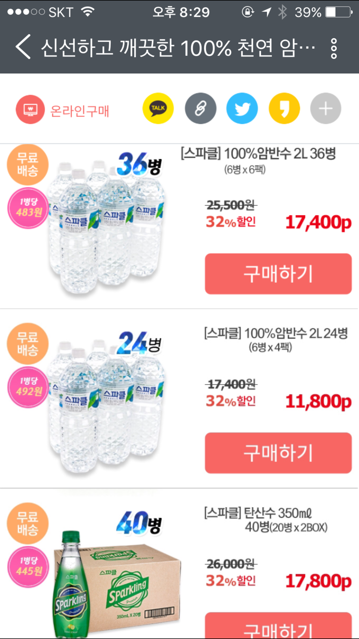 지난번에 산 스파클 생수와 탄산수 모두 떨어져가는데 덕분에 잘 샀습니다 감사합니다!