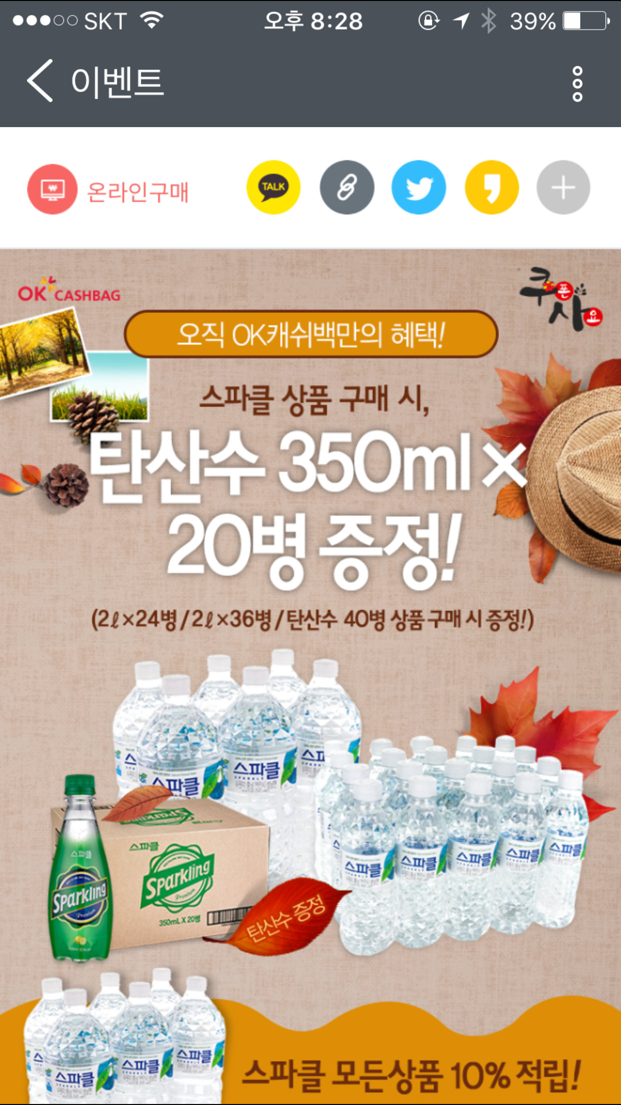 먼저 오케이캐시백사이트에서 스파클로 검색해서 쿠폰을 구입하시구요.