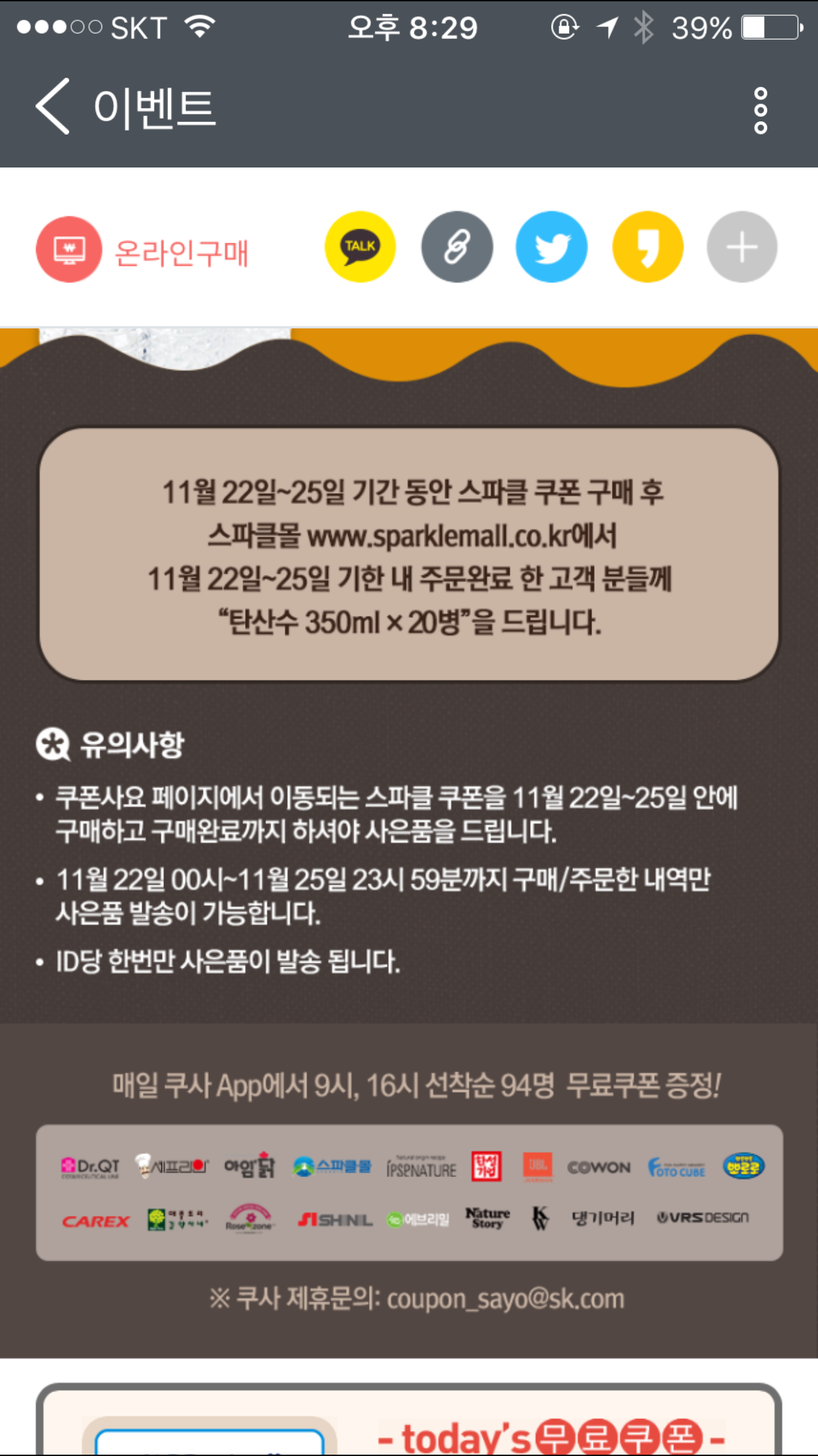 쿠폰사용하기 누르면 스파클사이트로 넘어가거든요.