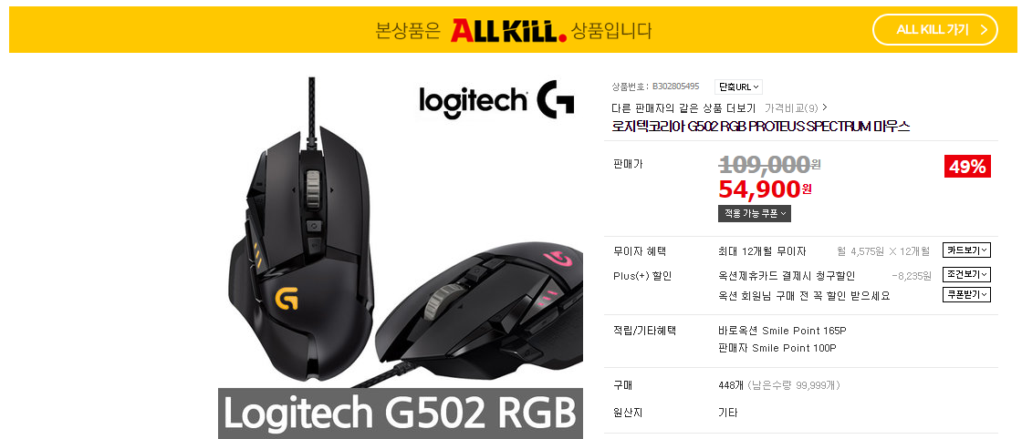 [옥션] 로지텍 G502 RGB (54,900/2,500)