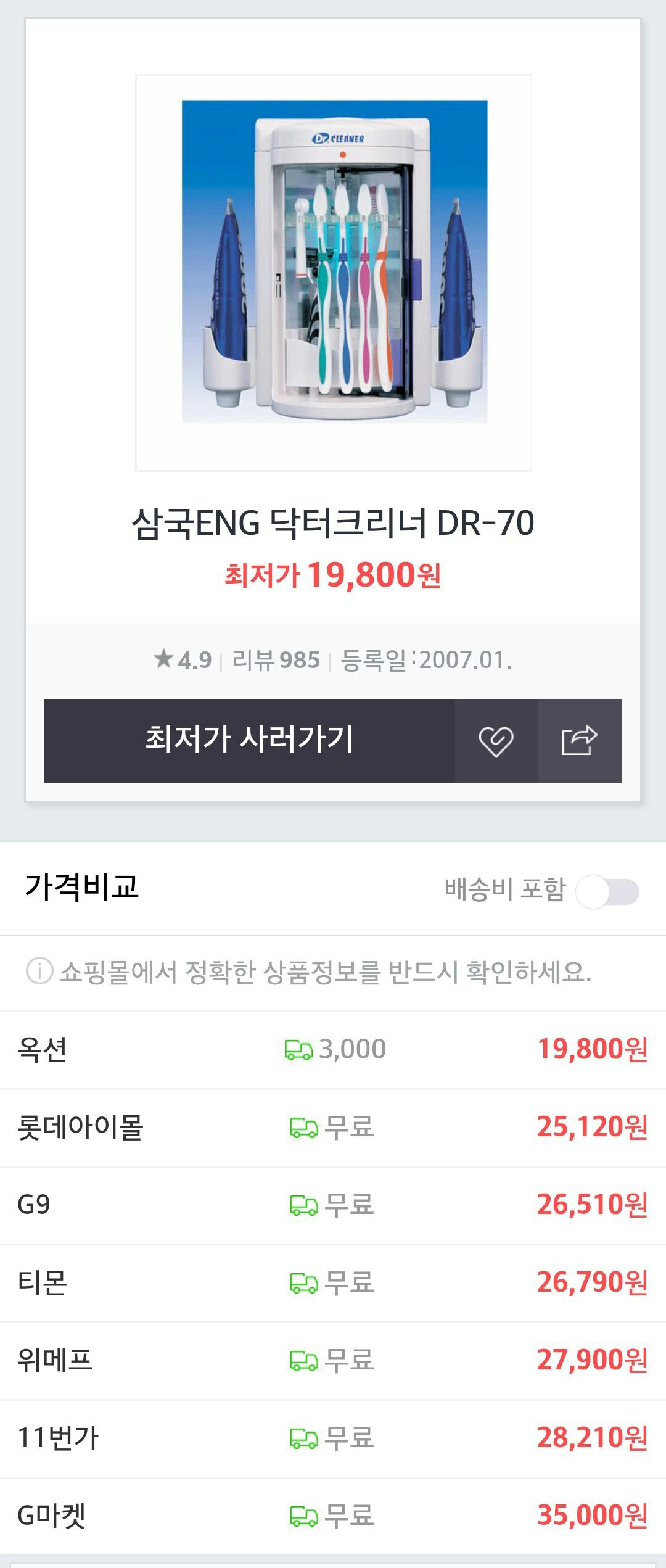 자외선 칫솔살균기 DR-70 에 대한 딜입니다.