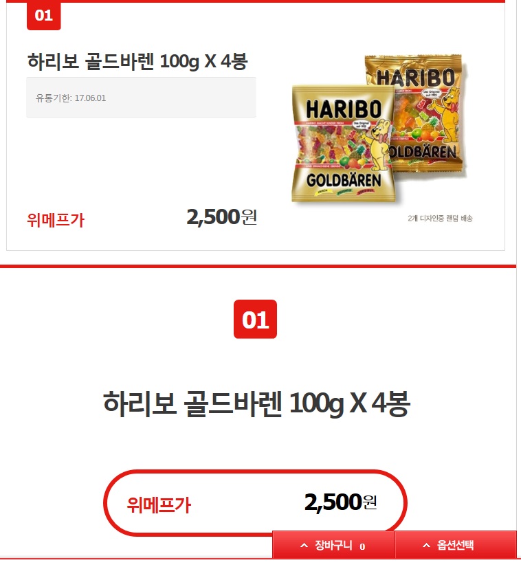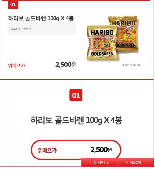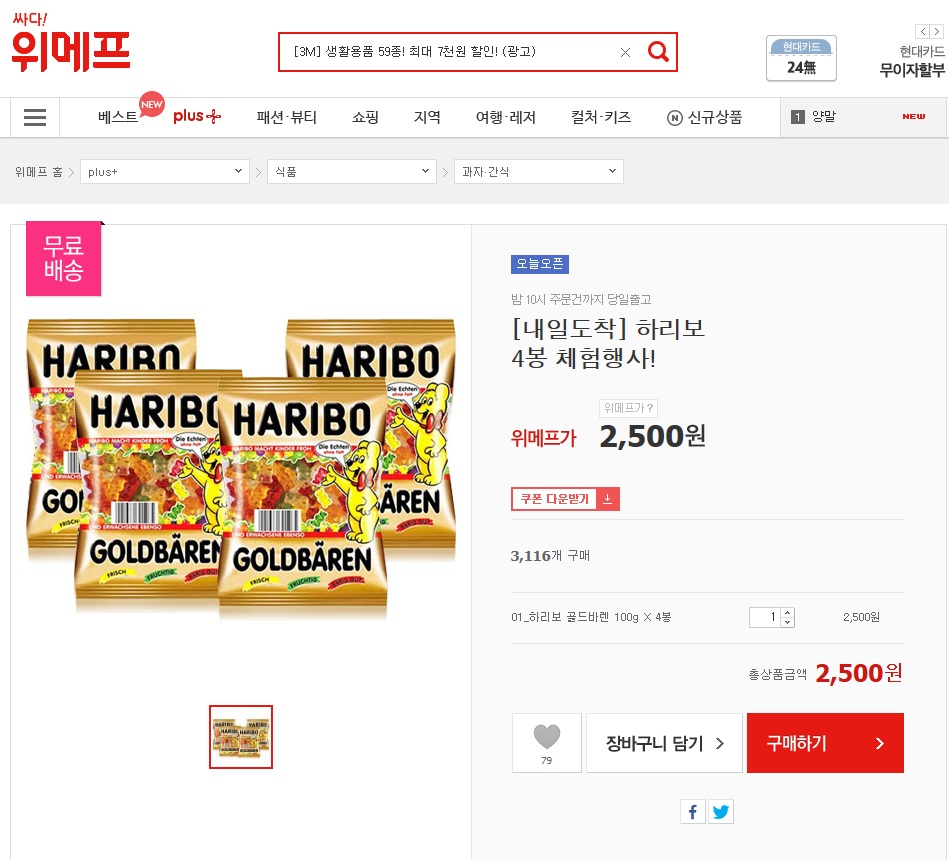 [위메프] 하리보 4봉 체험행사 100g*4 (2,500/무료) > 국내핫딜