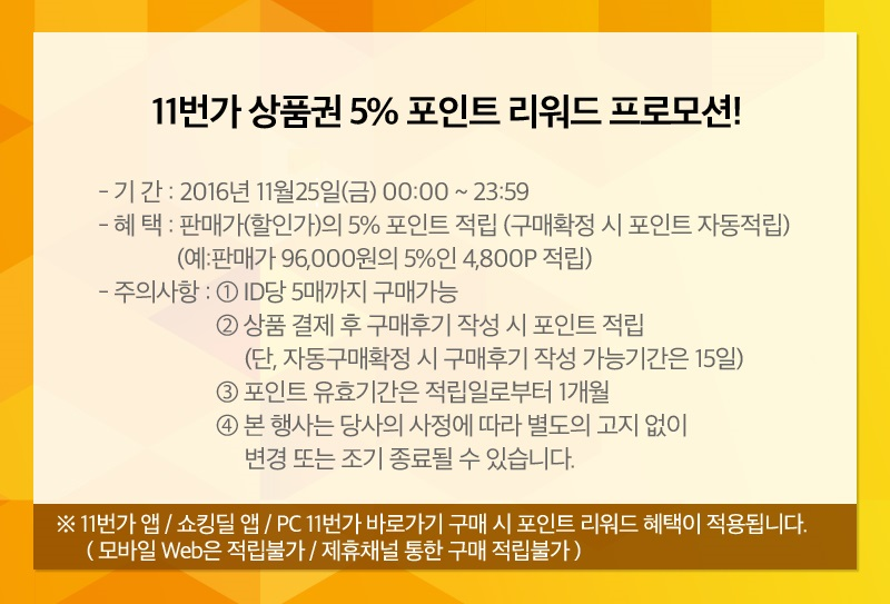쇼킹딜APP / 11번가APP / PC 11번가 바로가기 구매시 혜택이 적용됩니다.