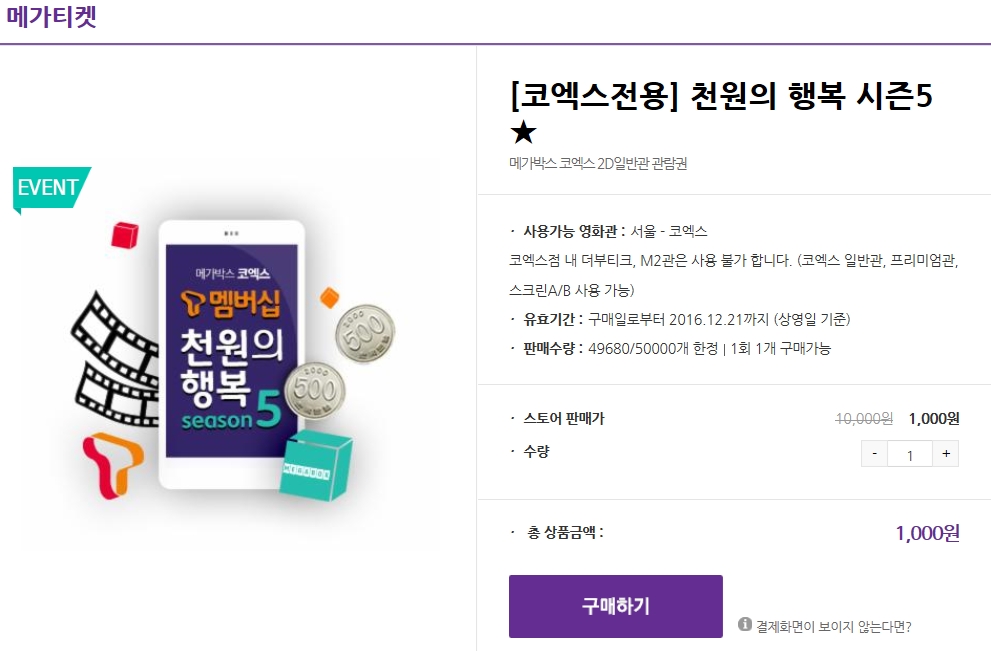 메가박스 아이디당 1회 구매 가능한데