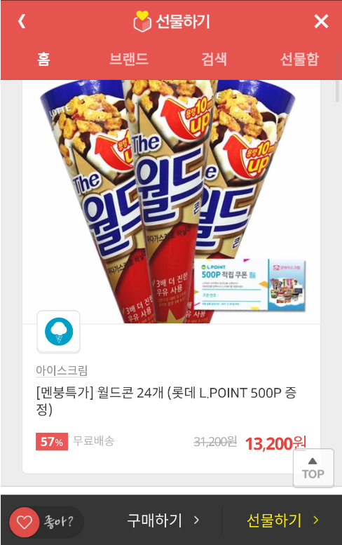[카카오톡 선물하기] 월드콘 24개 (13,200/무료) > 국내핫딜