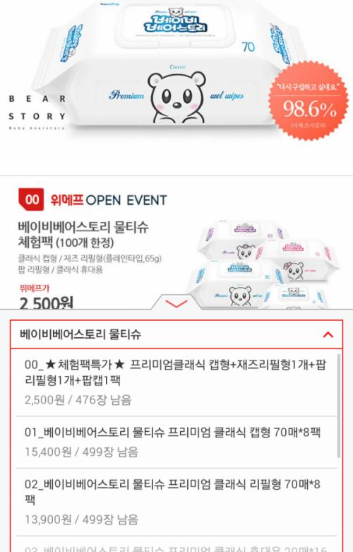 (종료)[위메프] 베이비베어스토리 물티슈 체험팩 (2,500/무료) > 국내핫딜
