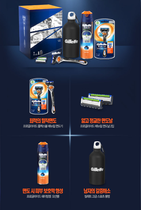 [G9] 질레트 프리미엄 메시팩(면도기+날+젤+메탈물병) (21,900/무료)