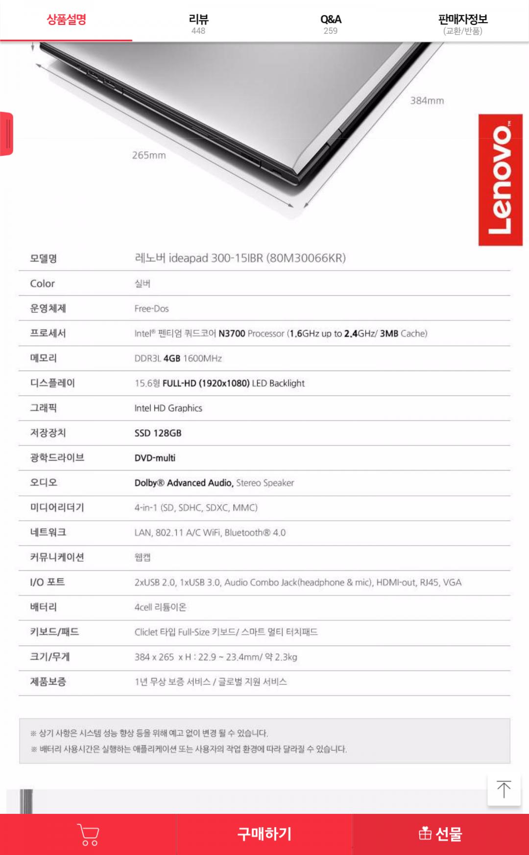 [11번가] 레노버 아이디어패드 노트북 (399,000/무료) > 국내핫딜