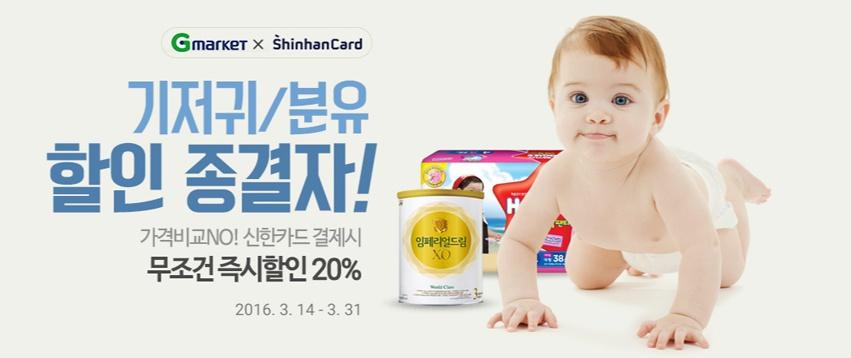 지마켓에서 브랜드 다양하게 기저귀랑 이유식, 분유 할인 중이니까