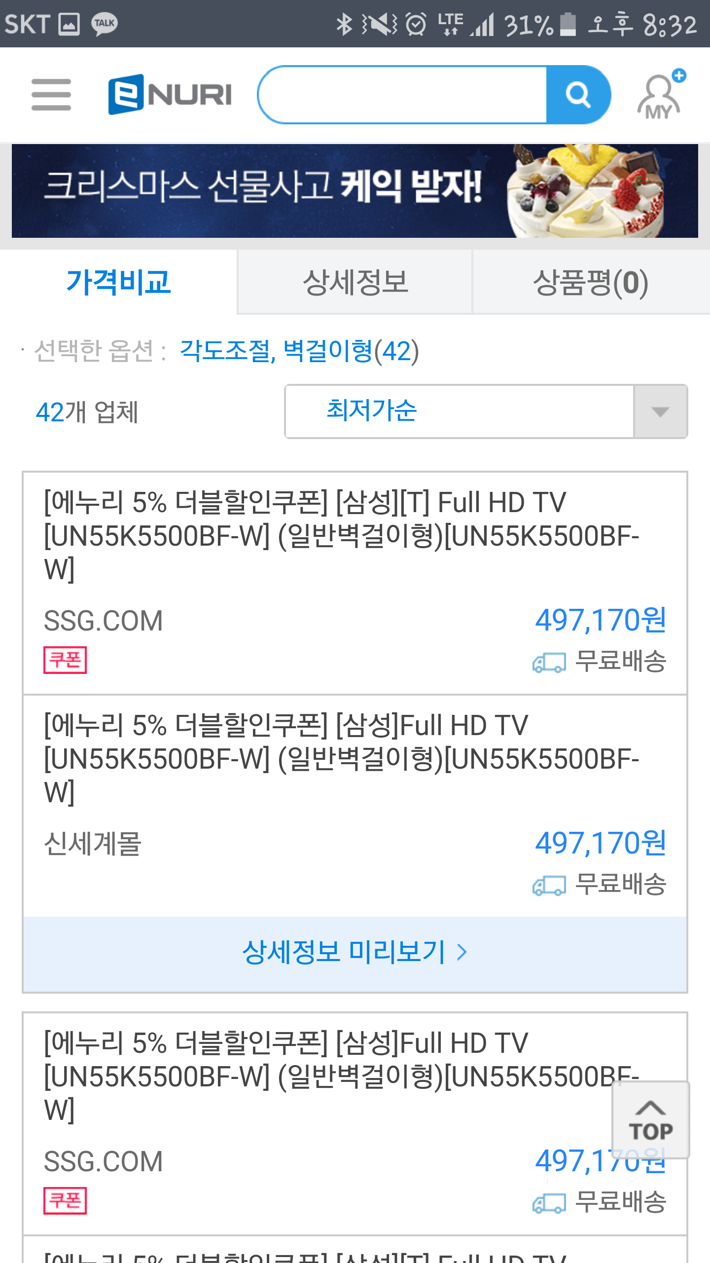 아 얼마전에 깡통 43인치 이거저거해서 43에 엘지꺼샀는데... 이게 훨 싸네요 |