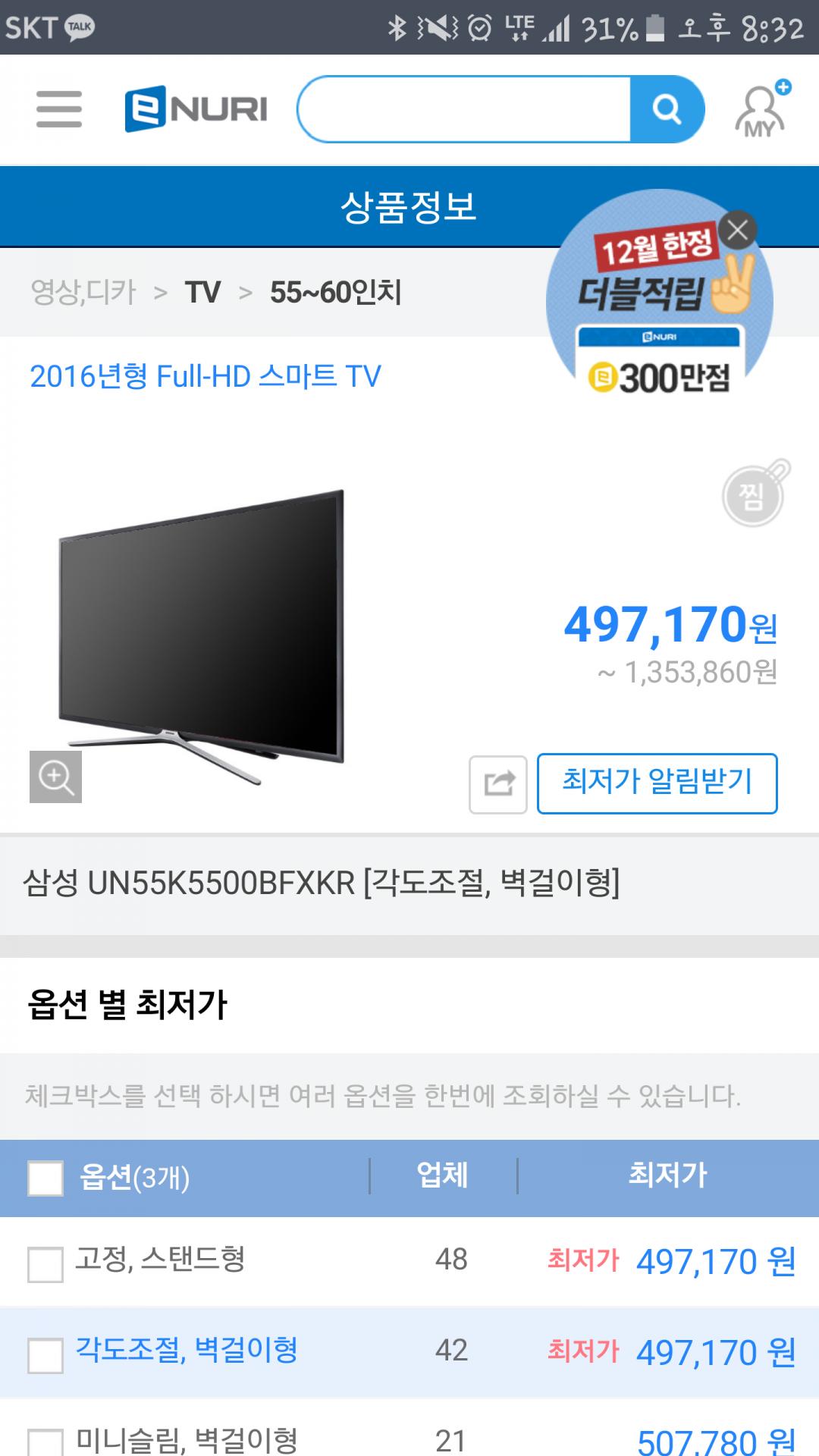 인치당 만원도 안되는 가격이라니! 이미 55인치인데도 사고싶은 가격이네요 ㄷㄷㄷ |