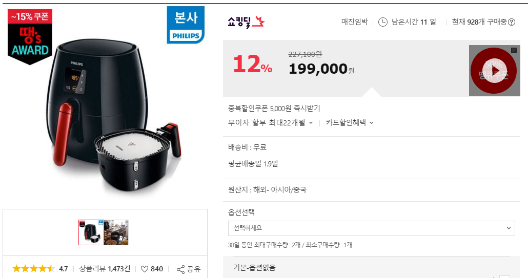 경거망동님이 올리셨던 필립스 에어프라이어 다시 나와서 끌올해봅니다. (http://www.dealbada.com/bbs/board.php?bo_table=deal_domestic&wr_id=207281)