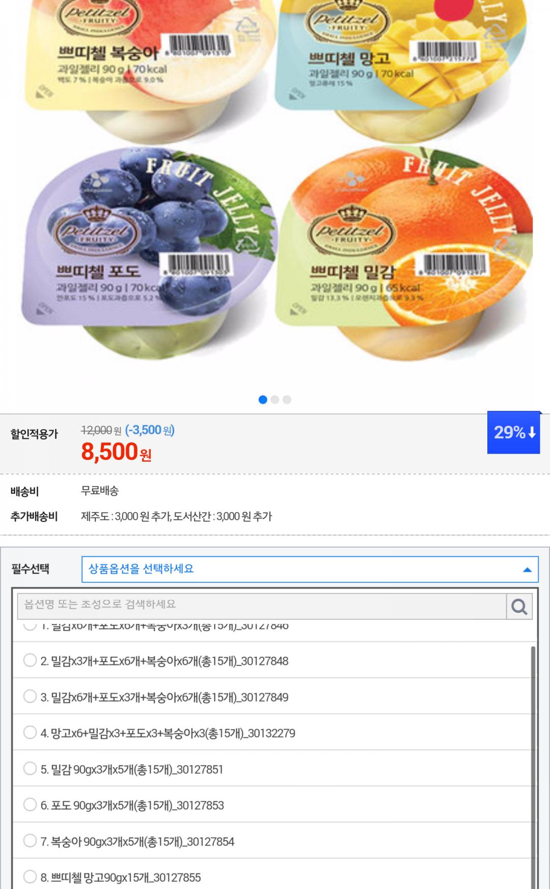[G마켓] 쁘띠첼 90gx 15개 /밀감 포도 복숭아 망고 (8,500/무료) > 국내핫딜