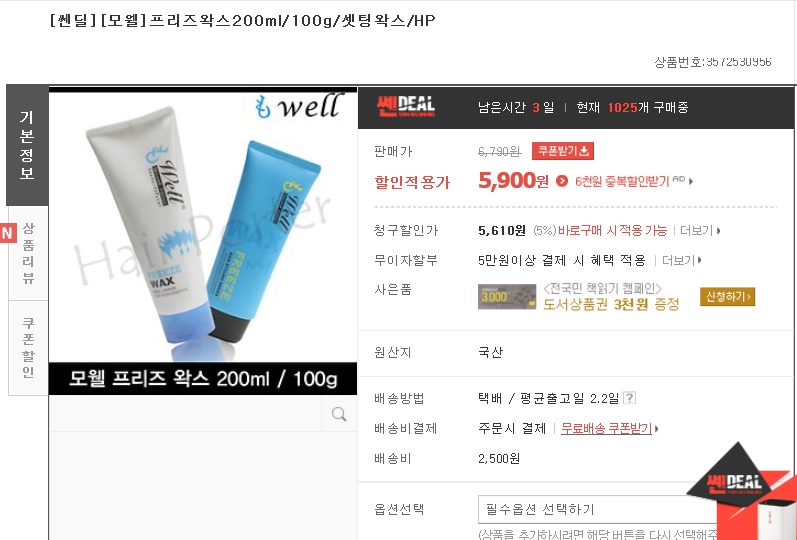 [인터파크] 모웰 프리즈 왁스 200ml (5900/2500) > 국내핫딜