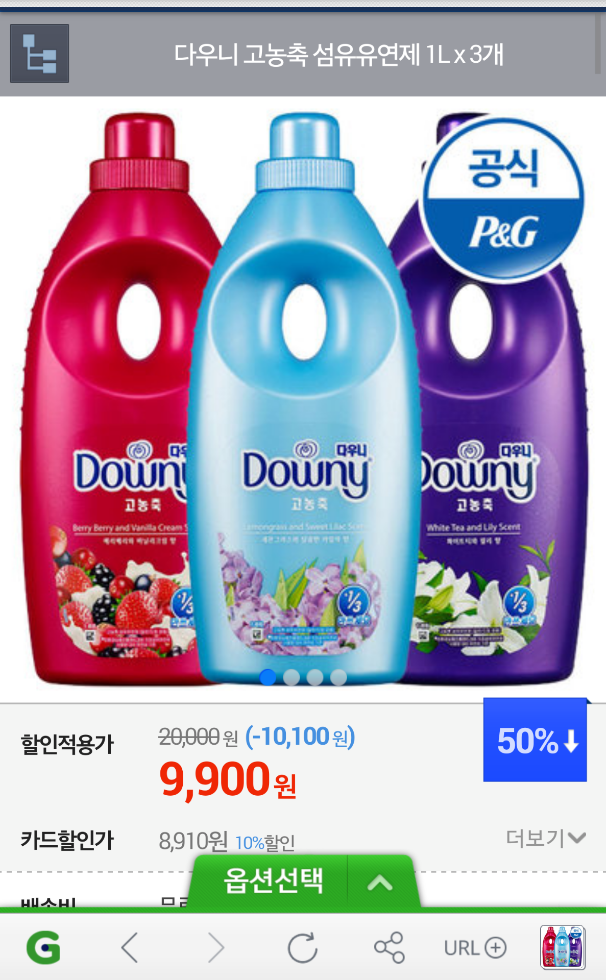 [G마켓] 다우니 1L*3개 (9,900/무료)