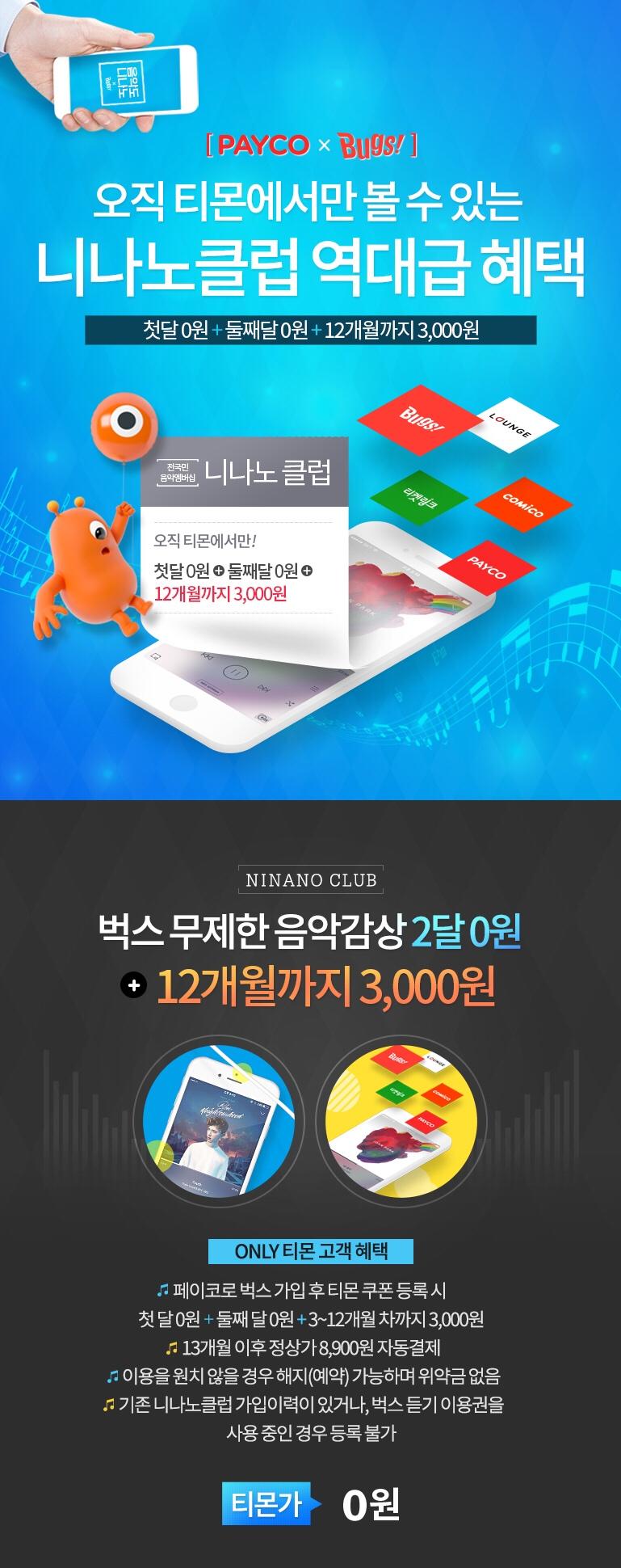[티몬] [페이코x벅스] 니나노 클럽, 2개월무료 (0/무료)