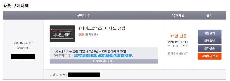 1인당 1매 구매 가능, PIN 등록기간 : ~ 2017.01.31까지