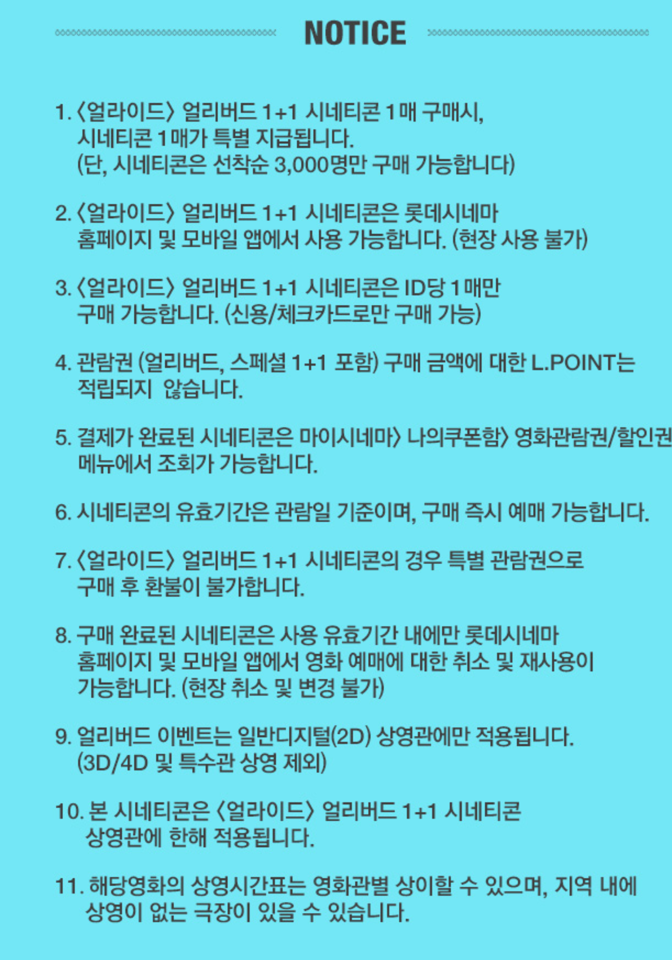 [롯데시네마] 얼리버드 얼라이드 1+1 (9,000/0)