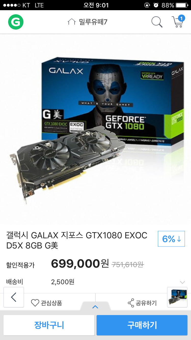 [지마켓] Galax지포스 GTX1080 EXOC D5X 8GB(699,000/2,500) > 국내핫딜