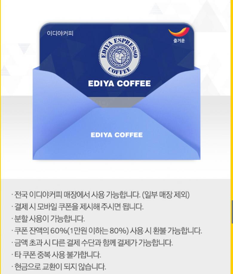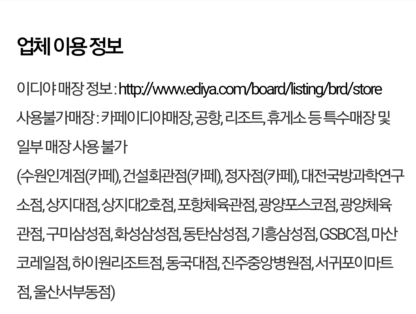 전 이디야 갈 시간 없지만 사무실 옆 이디야 자주 가는 아내를 위해(?) 2장 구입합니다..
