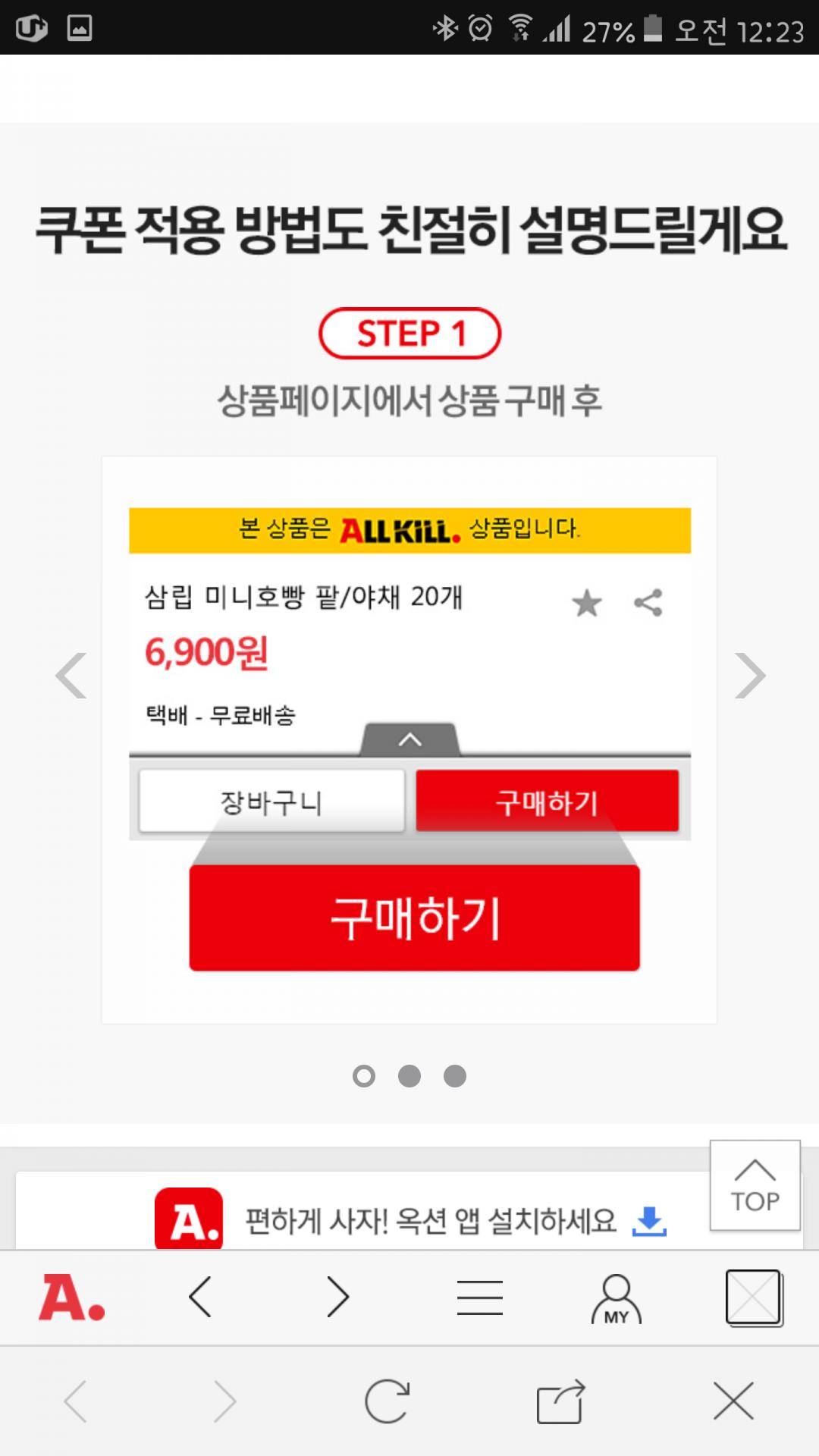 모바일 첫구매 쿠폰 있으면 3,450원이네요^^ |