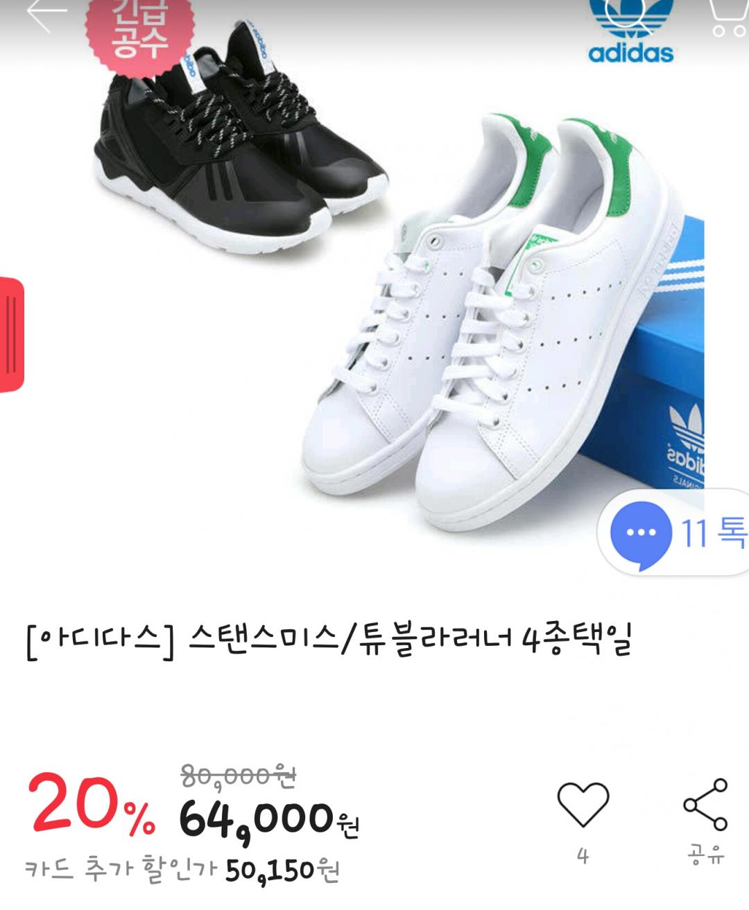 [11번가] 아디다스 스탠스미스, 튜블라러너 (64,000/0)vvip 42,650원 > 국내핫딜