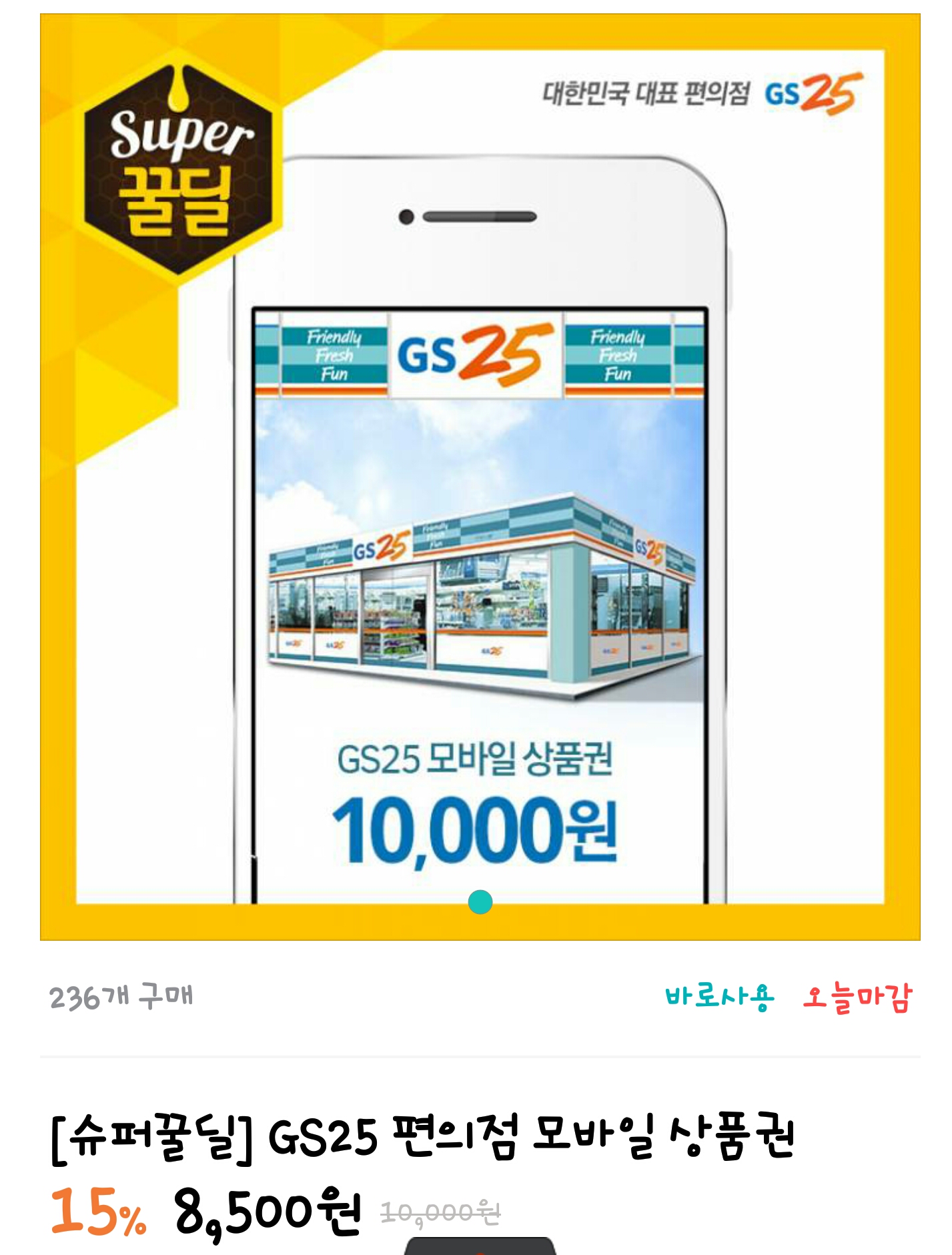 [티몬] gs25 모바일 1만원상품권 (8,500) > 국내핫딜