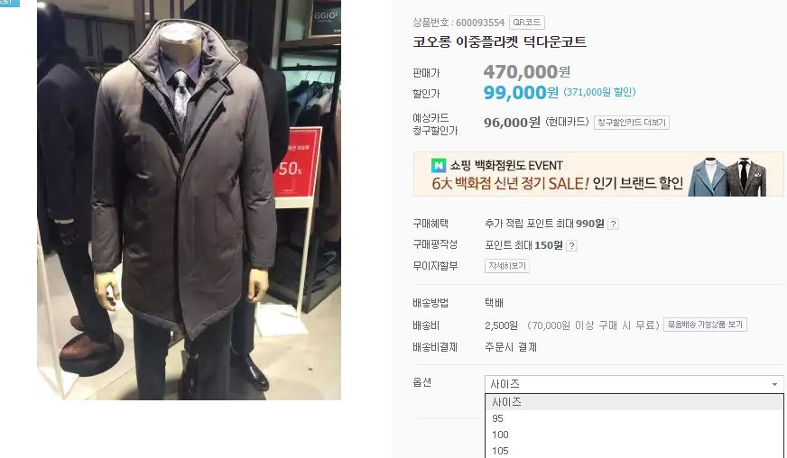 코오롱몰 들어가도 100사이즈밖에 없습니다.