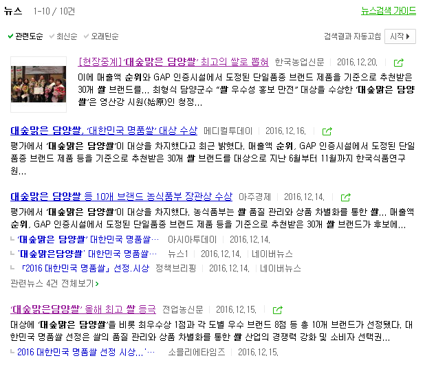 2016년 대한민국 명품쌀 대상을 받았다고 해서 관련 기사도 참아보았습니다.
