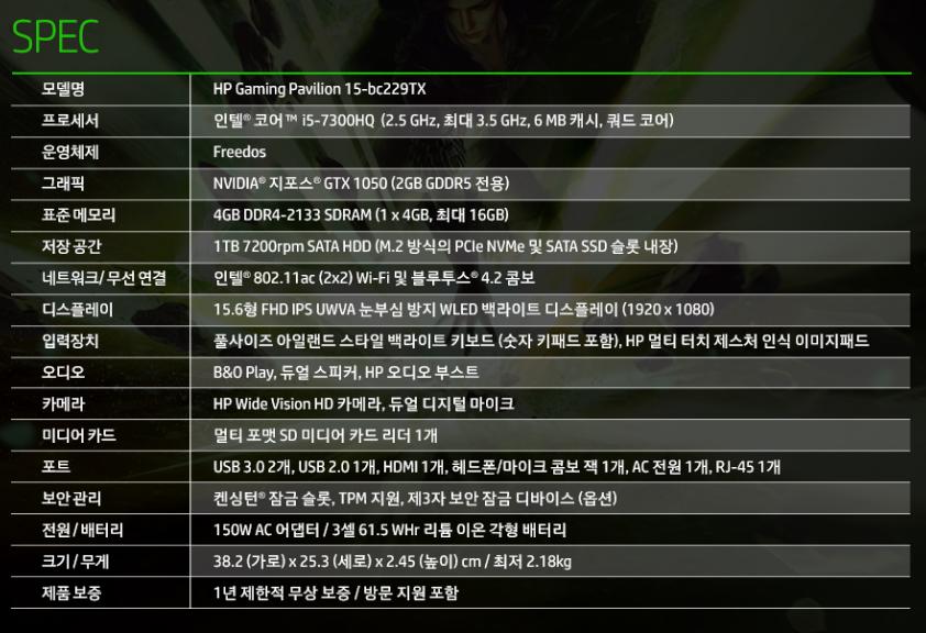 스펙에 비해 가격이 좋네요 게이밍 노트북으로 그냥저냥 쓰신다면 괜찮은 선택이 되겠군요