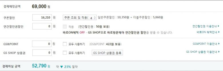 다나와 최저가는 52,790인데, GS Shop으로 가면 58,650 이에요... 가격이 오른건가요?