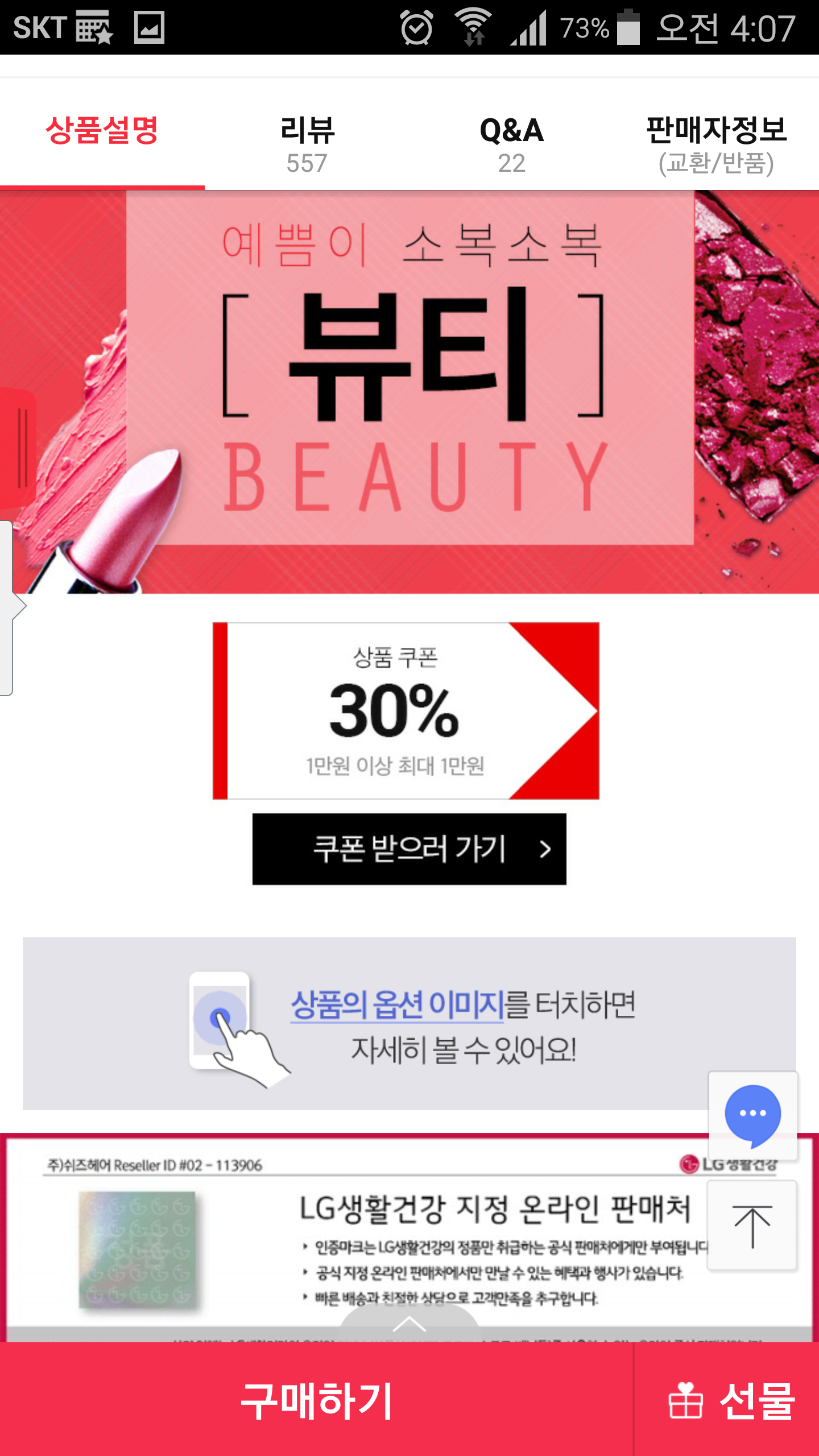 상품페이지내의 뷰티30프로 할인 쿠폰 꼭 받아서 적용하시구요.