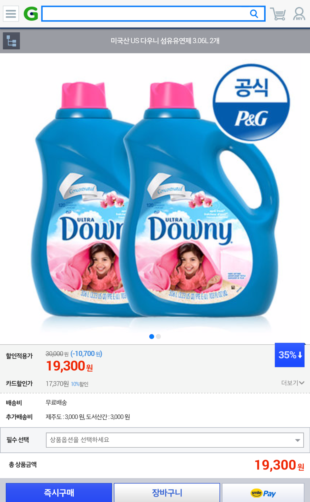 [G마켓] 미국산 다우니 3.06L*2 (19,300/무료)