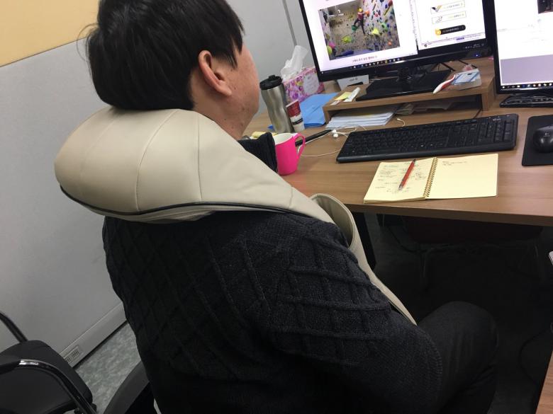 가만히 팔만 걸치고 있는거보다는 시원한 부위에 안마가 되게끔 팔로 조절을 잘해야 합니다.