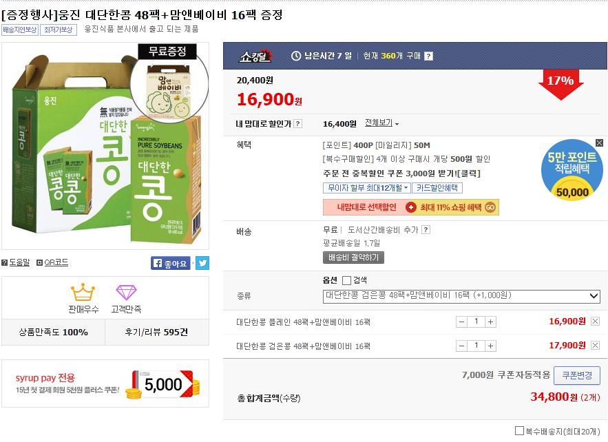 정상 판매가 16,900원인데 내맘대로 할인 3% 하셔서 16,400원
