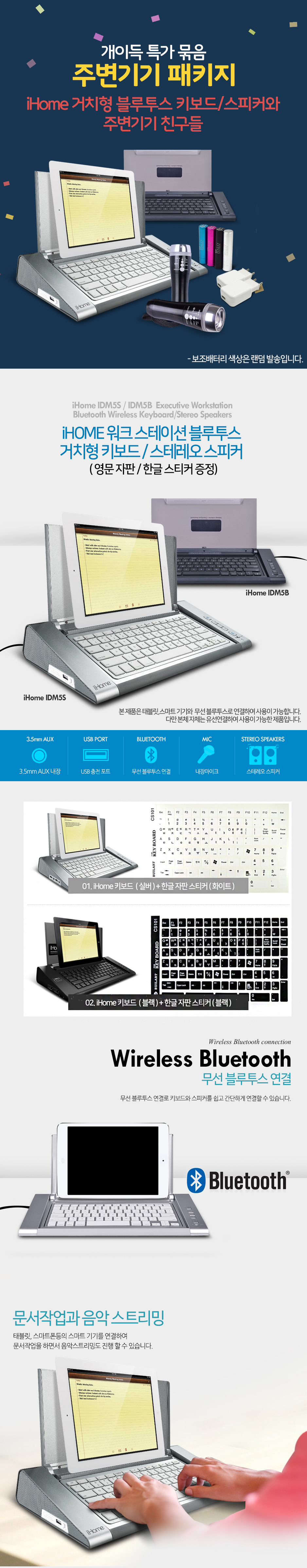 [태클라스트] iHome 거치형 키보드+스피커+보조배터리+LED후레쉬+충전어뎁터 (15.900/2.500)