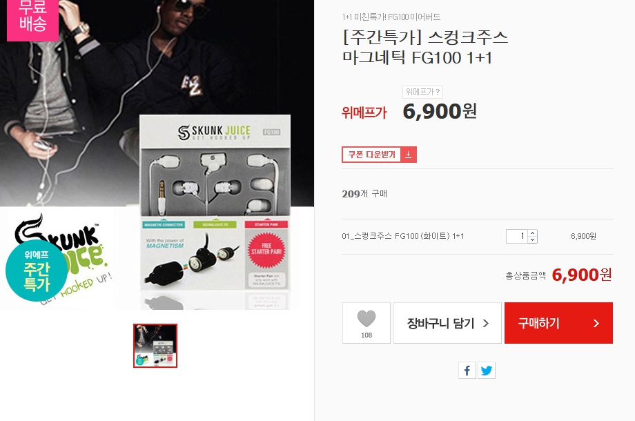 [위메프] [주간특가] 스컹크주스마그네틱 FG100 1+1 (6,900/무료)