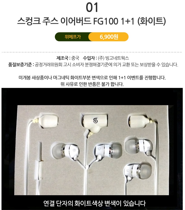 니 판매페이지에 보니 이어폰이 화이트 색상인데 그 마그네틱 연결단자 화이트 색상 부분쪽이 변색이 되어서 싸게