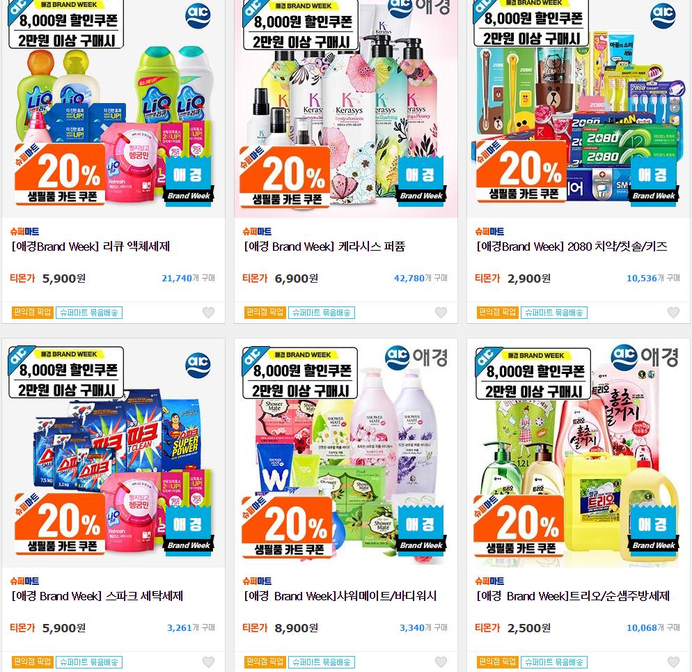 티몬에서 애경제품 2만원어치 사면 8천원 할인해주는 행사중입니다.
