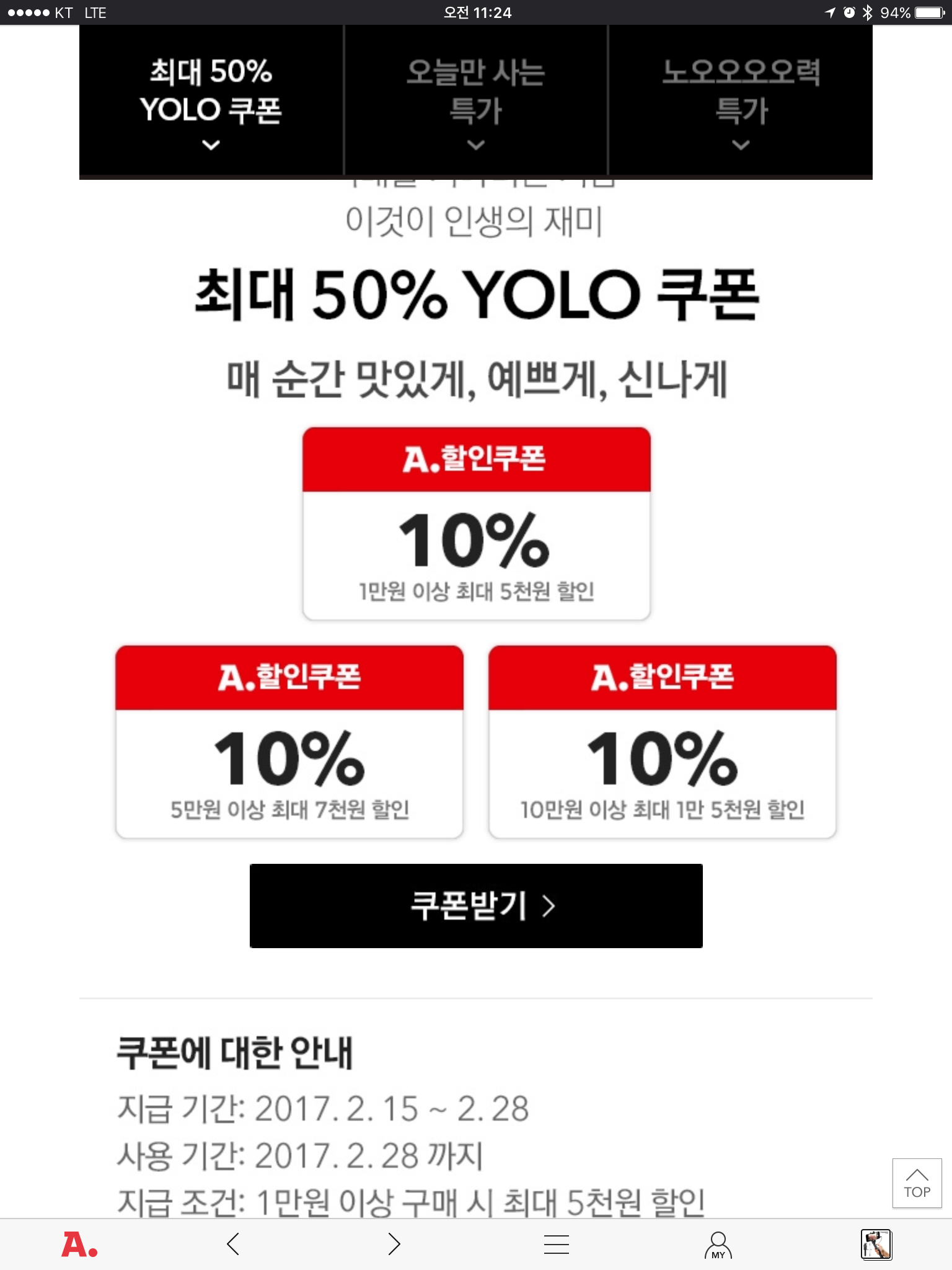 YOLO 페스티벌 오늘까지 쿠폰 주네요~